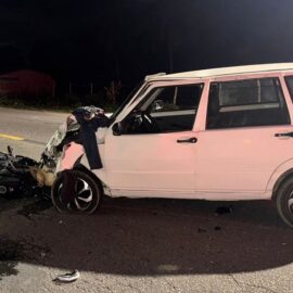 A informação é que o motocicleta teria invadido a pista contrária, ocasionando a colisão frontal com o veículo