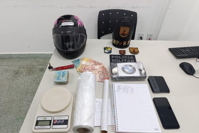 Durante a revista pessoal, foi encontrado um tablete de cocaína escondido na cintura do suspeito, além de outros materiais utilizados para o tráfico