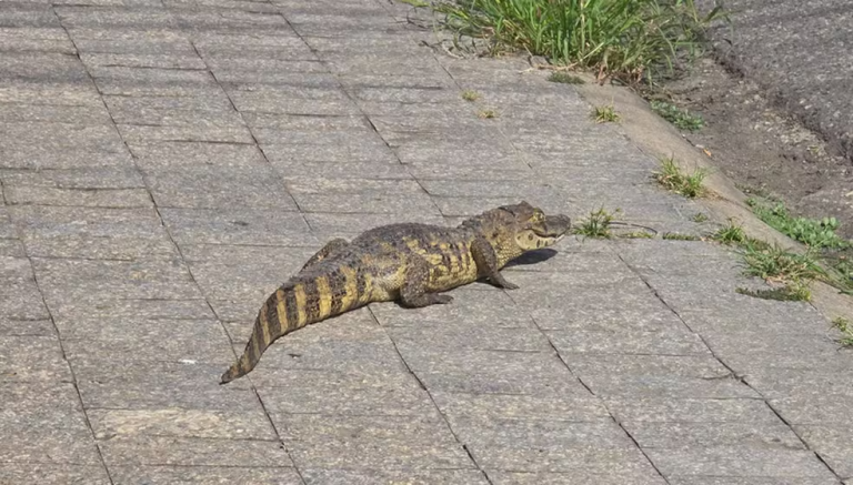 Uma equipe do Corpo de Bombeiros foi acionada e conseguiu capturar o animal que estava escondido embaixo de um veículo