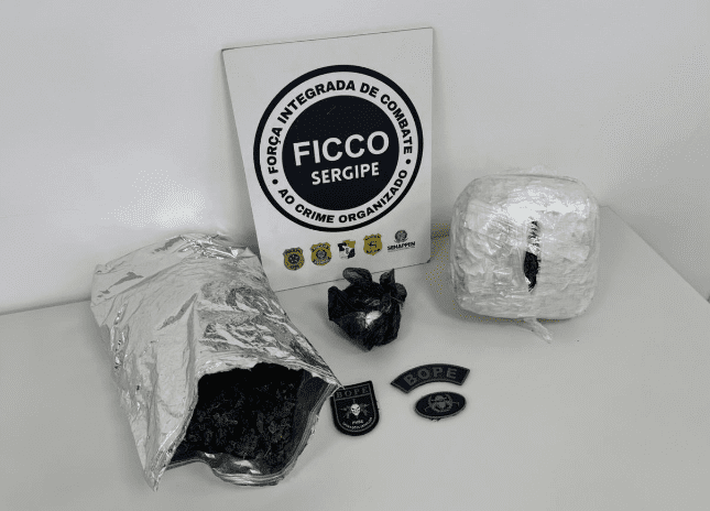 Durante fiscalização, foram encontrados aproximadamente 2 kg de maconha do tipo flor e cerca de 50 gramas de cocaína na bagagem da passageira