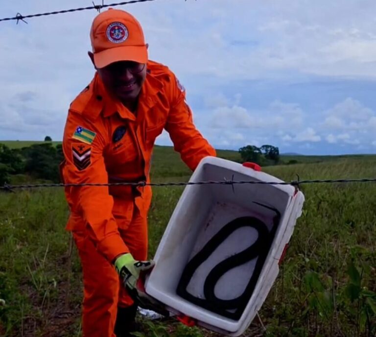 Após a captura, a mussurana foi devolvida ao seu habitat natural; animal foi encontrado dentro de uma residênca no município