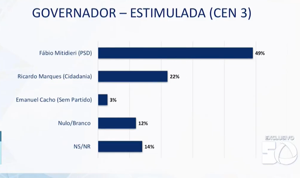 No cenário III, onde inclui o nome do vice-prefeito Ricardo Marques, mas uma vez o governador venceria o pleito com 49% das intenções de votos enquanto seu adversário, Ricardo Marques, teria 22%. É a maior diferença entre o governador e os pré-candidatos da oposição.