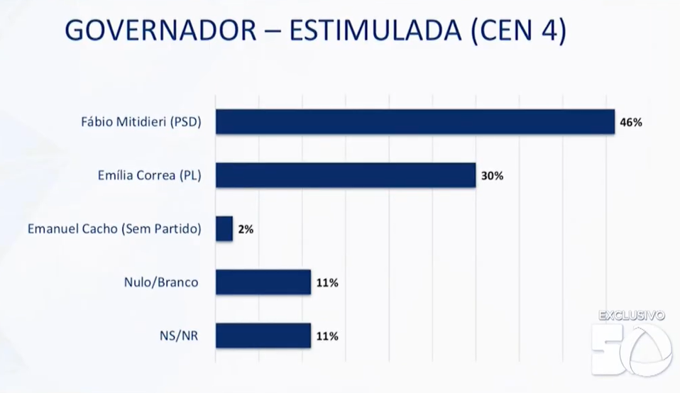No último cenário analisado que inclui a prefeita Emília Corrêa como a pré-candidata da oposição ao Governo de Sergipe, o governador Fábio venceria com 46% das intenções de votos enquanto a prefeita de Aracaju teria 30% das intenções de votos.