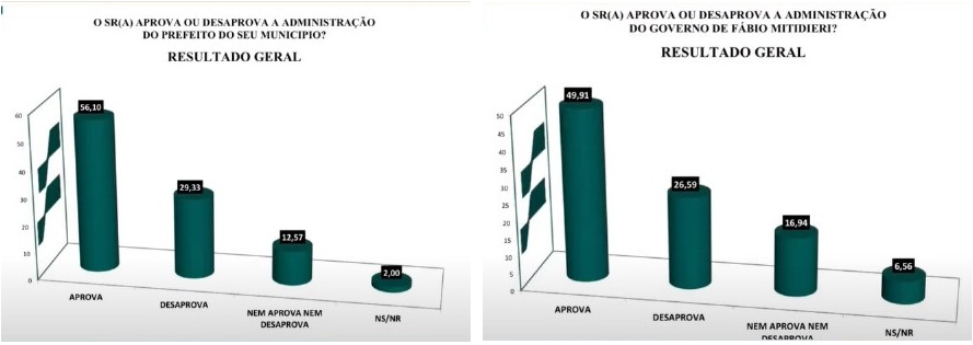 Em relação à gestão de Fábio Mitidieri à frente do Governo de Sergipe, 49,91% dos entrevistados aprovam a administração do governador, enquanto 26,59% desaprovam. Já 16,94% nem aprovam nem desaprovam, e 6,56% não quiseram opinar.