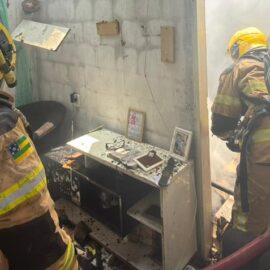 Durante a abordagem, o suspeito que estava armado com uma faca, tentou agredir um dos guardas no momento em que ele desembarcava da viatura. Diante da ameaça, a equipe da Guarda Municipal informa que agiu em legítima defesa, realizando um disparo de arma de fogo na perna do suspeito para cessar o ataque.