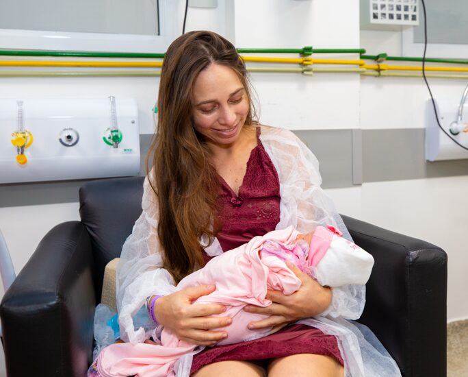 A dona de casa Kamilla Oliveira Santos, de 32 anos, também destacou a excelência do atendimento. Mãe de três, ela deu à luz a sua quarta filha, Rafaela, e falou sobre a humanização de todo o processo. “O atendimento aqui foi muito bom. Inclusive eu tenho plano de saúde, e meu parto seria em outra maternidade, mas me indicaram muito aqui. Então eu vim pra cá, ouvi muita gente falar bem. E graças a Deus eu não tenho do que reclamar. Foi cesáreo com a laqueadura, do jeito que era pra ter sido. O atendimento, os médicos que fizeram o parto, o anestesista, toda a equipe foi muito atenciosa e acolhedora. Além das meninas da limpeza, da enfermagem, sempre dando atenção, aquele cuidado e carinho”, disse.