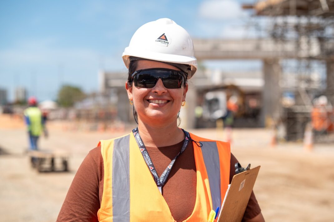 Nos canteiros de obras, os investimentos também se traduzem em inclusão e novas possibilidades. A presença feminina cresce em funções técnicas e de controle de qualidade, rompendo barreiras históricas do setor, como é o caso da assistente de qualidade Larissa Manoela Gama, que atua no controle de materiais e processos na obra do Complexo Viário. “É uma grande oportunidade de aprendizado e crescimento profissional. Já trabalhei na construção civil há alguns anos, parei um pouco e voltei agora. Estou há três meses aqui e