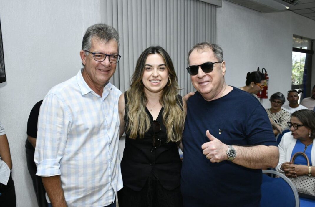 Larissa Franco ao lado de seus líderes políticos, o senador Laércio Oliveira e o ex-prefeito Zé Franco