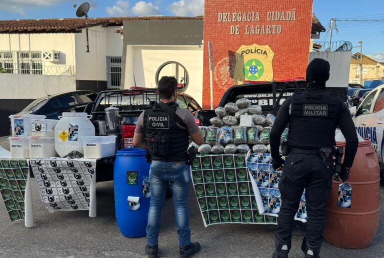 Uma operação integrada realizada nesta quarta-feira (11) pela Delegacia Regional de Lagarto e pelo 7º Batalhão da Polícia Militar (7º BPM) resultou na desarticulação de um grupo suspeito de atuar no tráfico de entorpecentes e na descoberta de um laboratório clandestino de drogas no município de Lagarto. Ao todo, cerca de 30 quilos de substâncias ilícitas foram apreendidos.