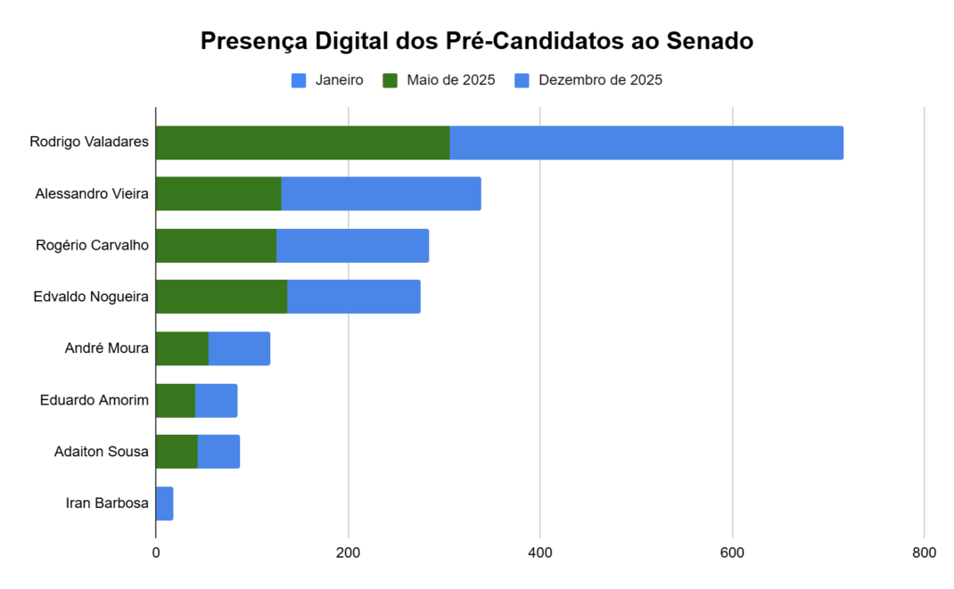 A escolha pela plataforma do Instagram se dá pelo fato de ser a rede social mais utilizada por políticos e usuários em Sergipe. Assim, vamos utilizá-la como um termômetro da presença digital dos postulantes a uma cadeira no Senado nas eleições de 2026.