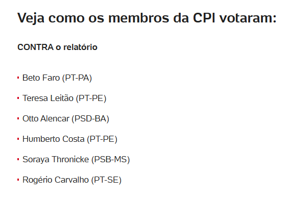 Segundo o parlamentar, a CPI não deve ser utilizada como instrumento de vingança. “CPI não pode ser instrumento de vingança. No final, a gente só propõe o indiciamento de três ministros, o que passa a ideia de que é uma vingança”, afirmou.