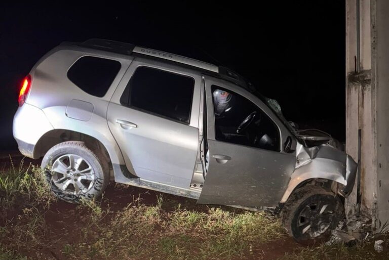 Motorista foi hospitalizado e poste ficou instável após o impacto