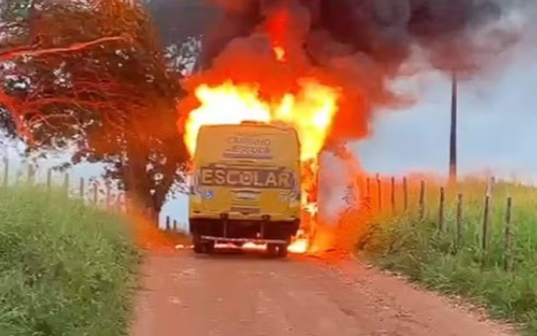 Segundo a prefeitura, 12 crianças estavam no carro mas conseguiram sair sem ferimentos