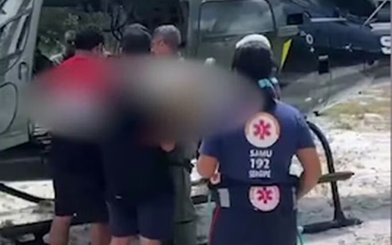 A mulher foi resgatada e levada de helicóptero para o hospital