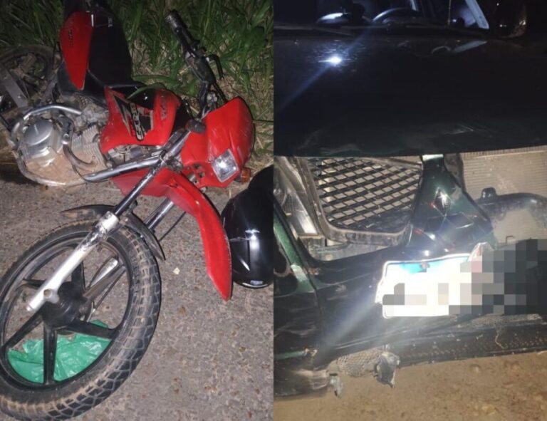 Houve uma colisão frontal entre o carro e moto e, em seguida, uma colisão lateral entre o mesmo carro e um caminhão