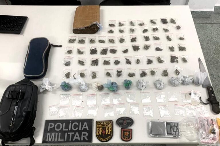 Segundo a polícia, as investigações apontaram que o suspeito, que usa tornozeleira eletrônica, estaria armazenando drogas em um imóvel próximo a uma área de mata