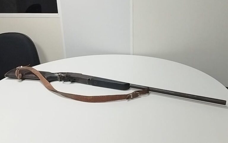 Durante a intervenção policial, o homem tentou esconder a faca em um sofá da sala, mas foi detido e recebeu voz de prisão