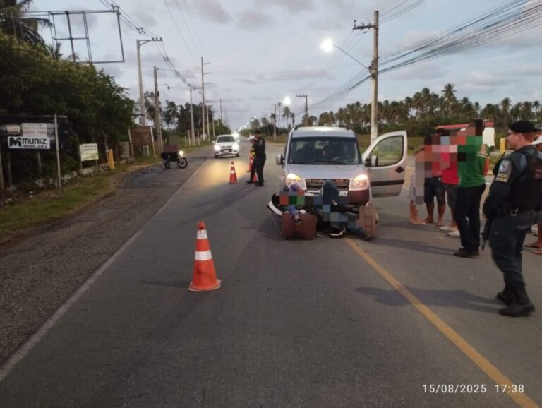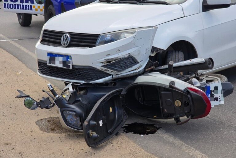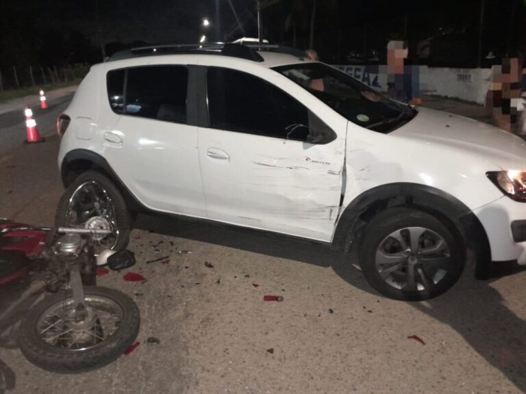 Motociclista relata que seguia no sentido Atalaia quando foi atingido pelo carro, que saía do acesso ao Povoado Robalo